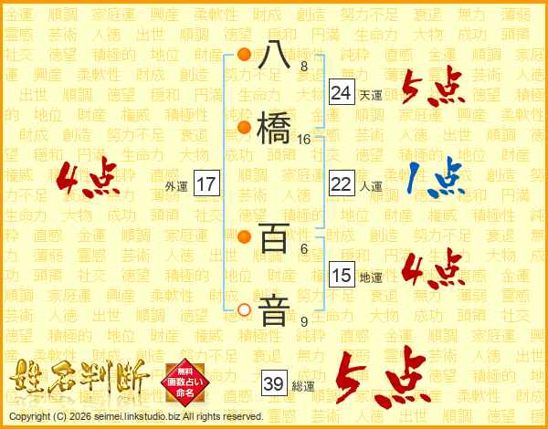 八橋百音さんの総運は39画の5点!