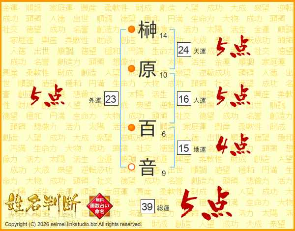 榊原百音さんの総運は39画の5点!