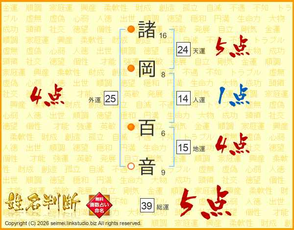 諸岡百音さんの総運は39画の5点!