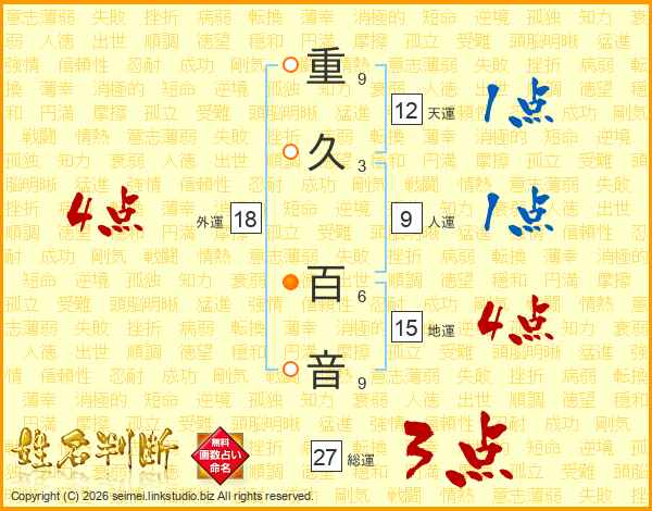 重久百音さんの総運は27画の3点!