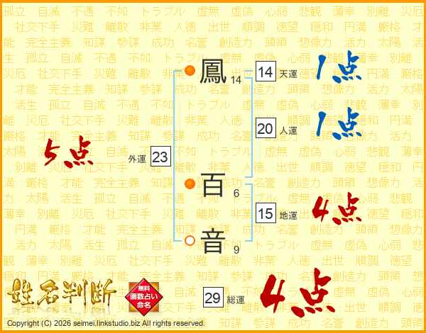 鳳百音さんの天運は14画の1点!