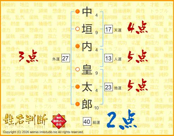 中垣内皇太郎さんの人運は13画の5点!