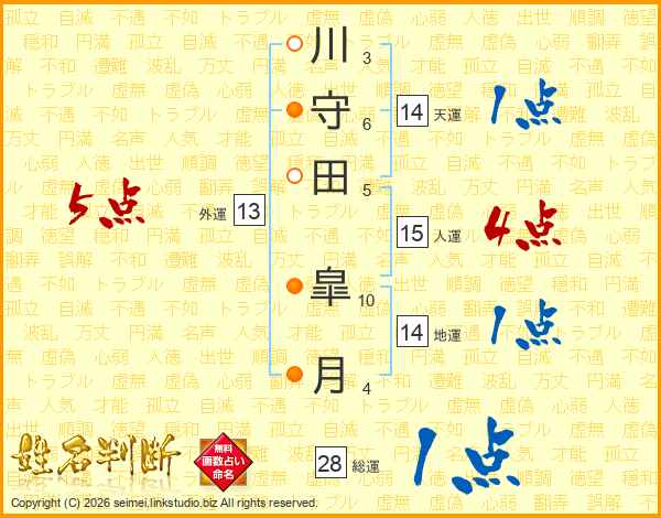 川守田皐月さんの総運は28画の1点!