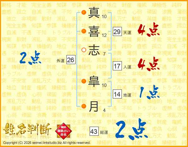 真喜志皐月さんの総運は43画の2点!