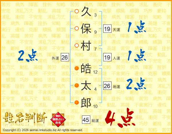 久保村皓太郎さんの地運は26画の2点!