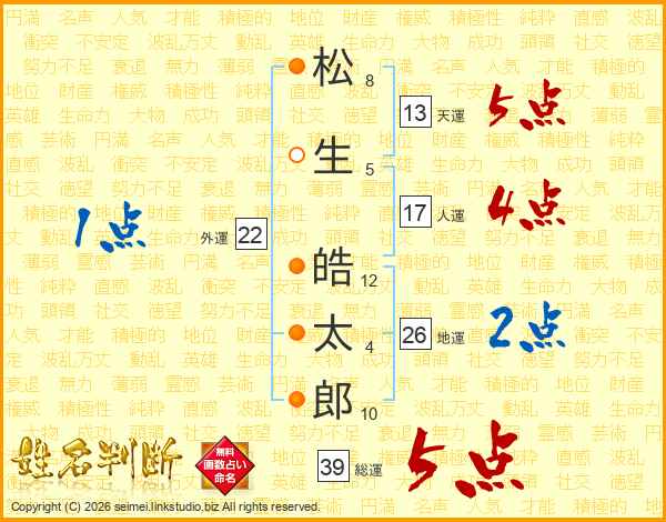 松生皓太郎さんの総運は39画の5点!