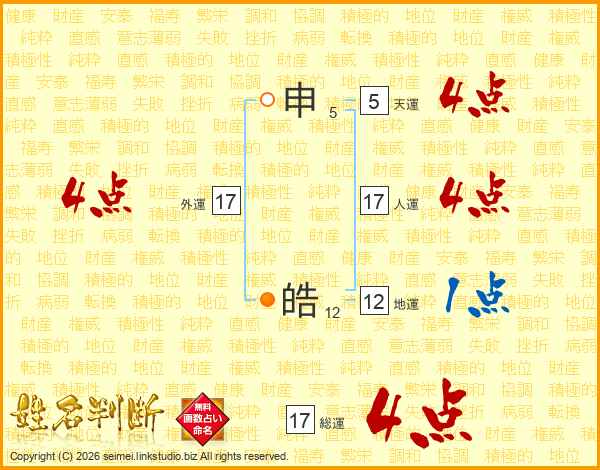 申皓さんの総運は17画の4点!