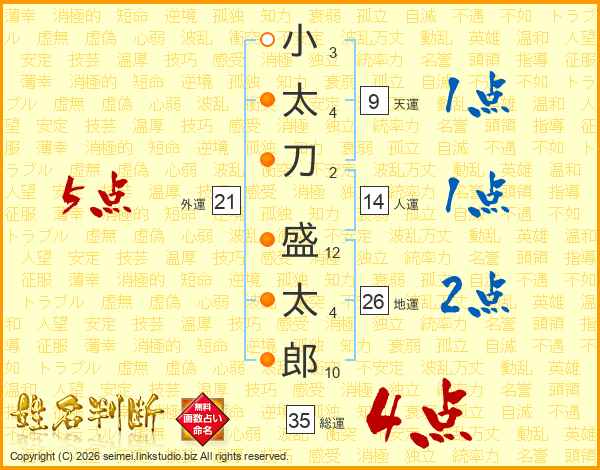 小太刀盛太郎さんの総運は35画の4点!