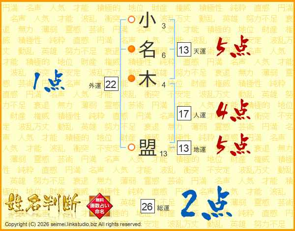 小名木盟さんの総運は26画の2点!