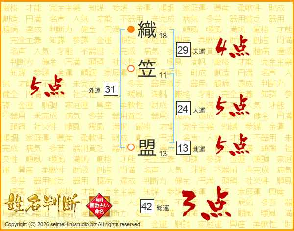 織笠盟さんの総運は42画の3点!