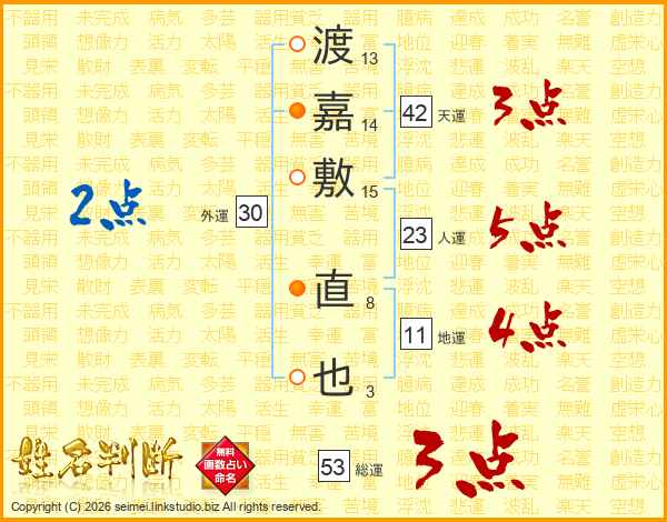 渡嘉敷直也さんの人運は23画の5点!