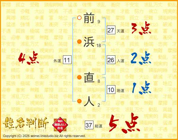 前浜直人さんの総運は37画の5点!