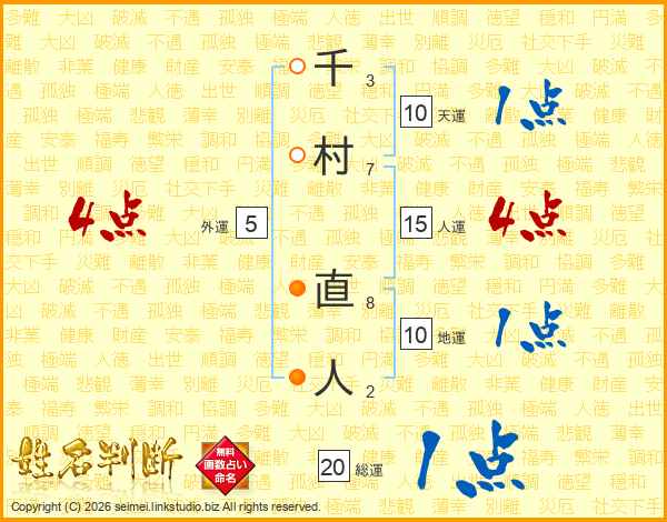 千村直人さんの人運は15画の4点!