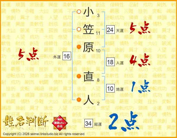 小笠原直人さんの総運は34画の2点!