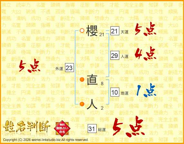 櫻直人さんの総運は31画の5点!