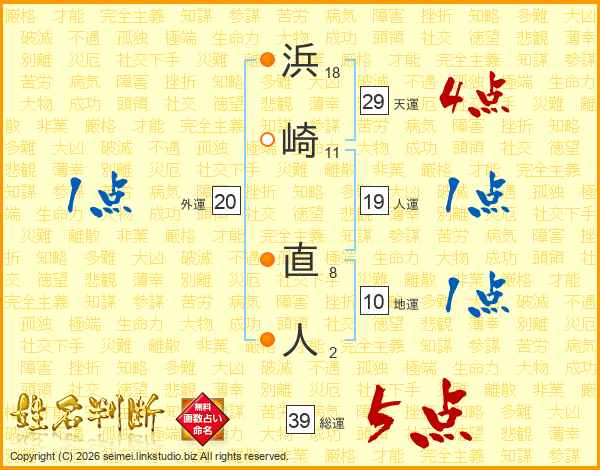 浜崎直人さんの総運は39画の5点!