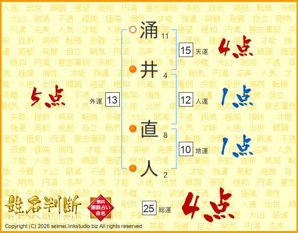 涌井直人さんの総運は25画の4点!