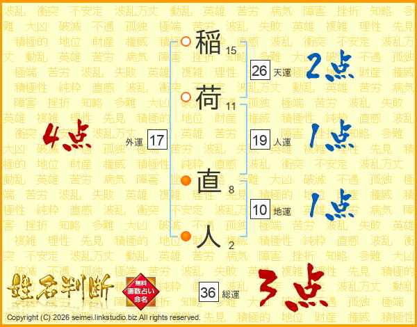 稲荷直人さんの総運は36画の3点!