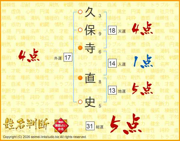 久保寺直史さんの総運は31画の5点!