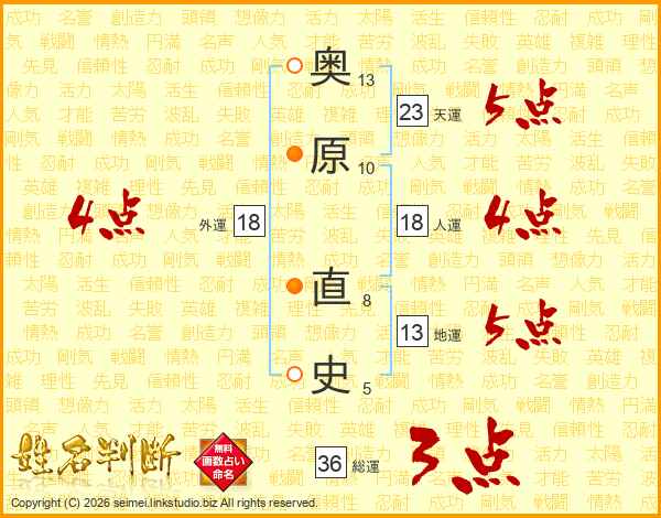 奥原直史さんの天運は23画の5点!