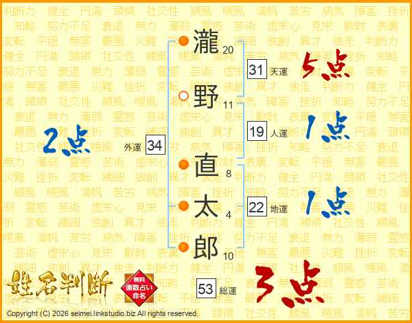 瀧野直太郎さんの総運は53画の3点!