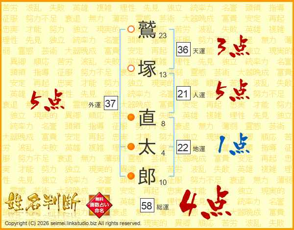 鷲塚直太郎さんの総運は58画の4点!