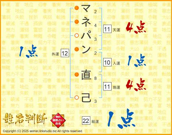 マ(2画)ネ(4画)パ(3画)ン(2画) 直(8画)己(3画)