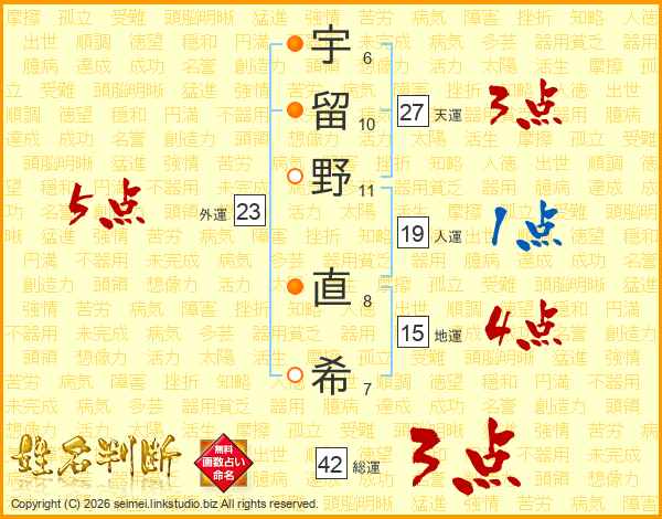 宇留野直希さんの天運は27画の3点!