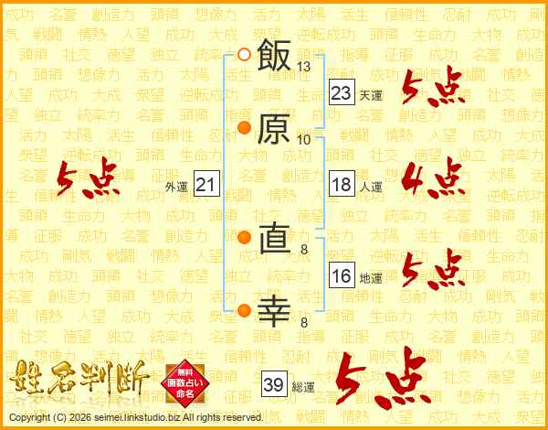 飯原直幸さんの総運は39画の5点!