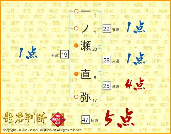 一ノ瀬直弥さんの総運は47画の5点!