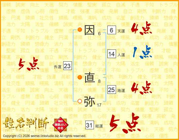 因直弥さんの総運は31画の5点!