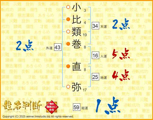 小(3画)比(4画)類(19画)巻(8画) 直(8画)弥(17画)