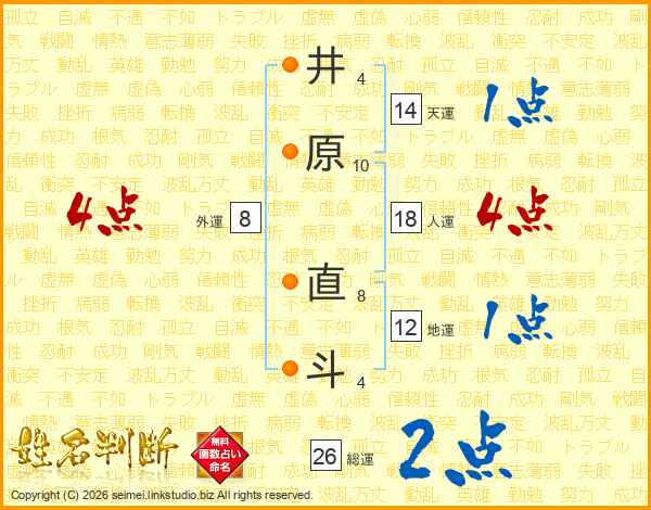 井原直斗さんの総運は26画の2点!