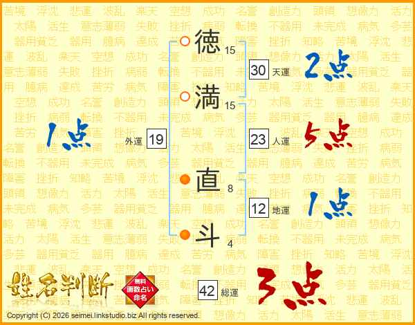 徳満直斗さんの天運は30画の2点!