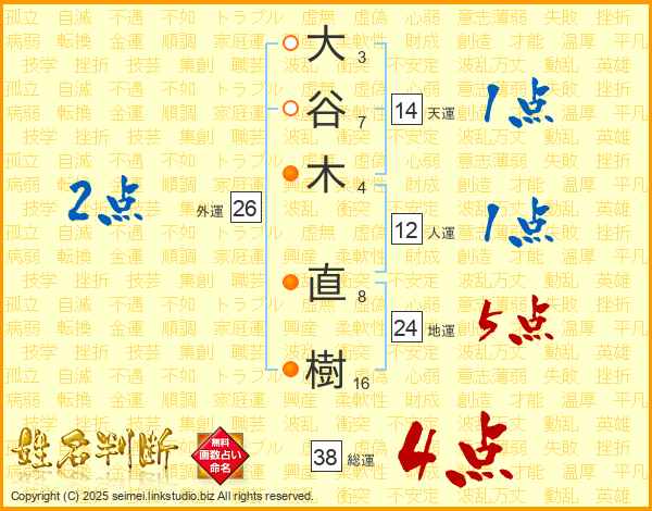 大(3画)谷(7画)木(4画) 直(8画)樹(16画)