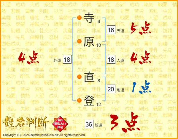 寺原直登さんの人運は18画の4点!