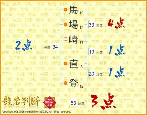 馬(10画)場(12画)崎(11画) 直(8画)登(12画)