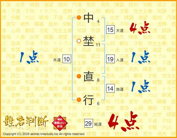 中埜直行さんの総運は29画の4点!
