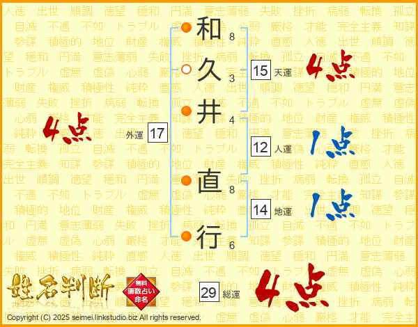 和久井直行さんの総運は29画の4点!