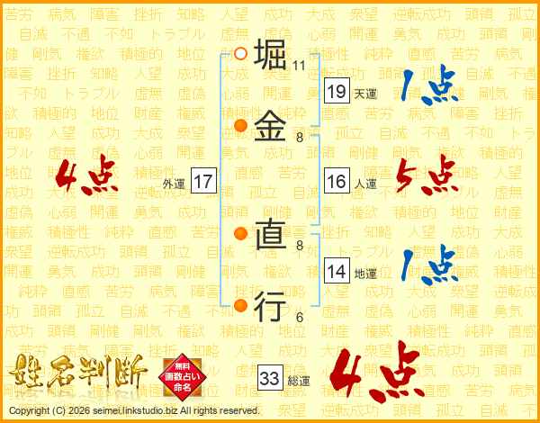 堀金直行さんの総運は33画の4点!