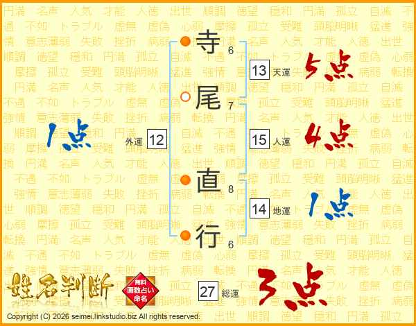 寺尾直行さんの総運は27画の3点!