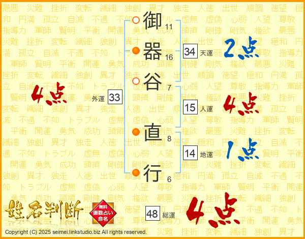 御(11画)器(16画)谷(7画) 直(8画)行(6画)