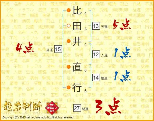 比(4画)田(5画)井(4画) 直(8画)行(6画)
