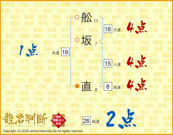 舩坂直さんの総運は26画の2点!