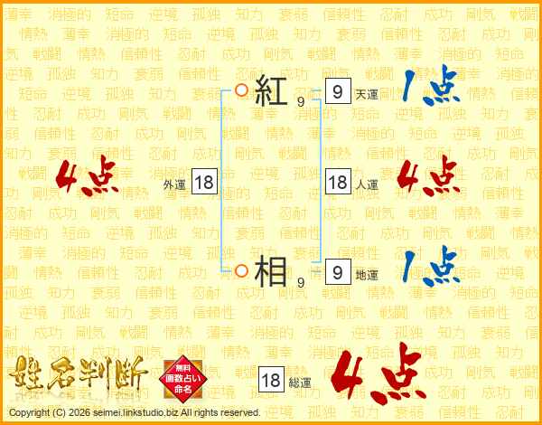 紅相さんの総運は18画の4点!