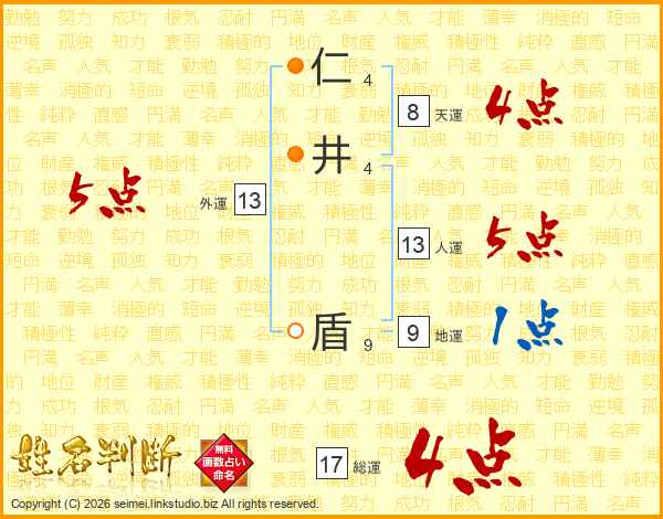 仁井盾さんの総運は17画の4点!
