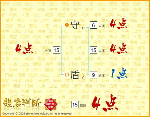 守盾さんの人運は15画の4点!