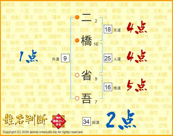 二橋省吾さんの天運は18画の4点!