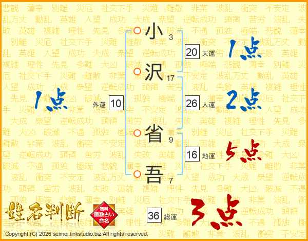 小沢省吾さんの総運は36画の3点!