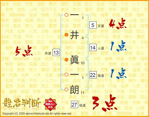 一(1画)井(4画) 眞(10画)一(1画)朗(11画)